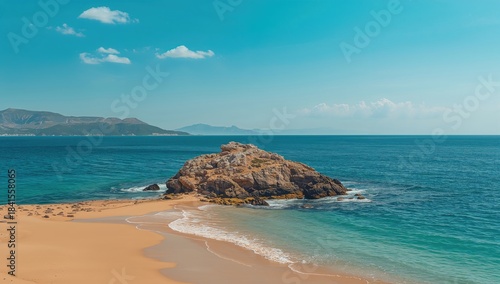 © TheWaterMeloonProjec, Fototapeta premium Coastal scene from the shore facing the Mediterranean, ideal for UI backdrop or layout design