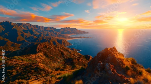 © Arthur Constantine, Fototapeta premium Coastal Sunset Landscape with Mountains