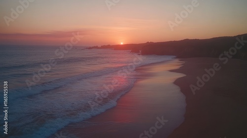 © AGUNG, Fototapeta premium Coastal sunset, waves on sandy beach.