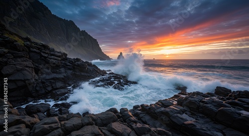 © Go, Obraz premium Coastal Sunset with Crashing Waves