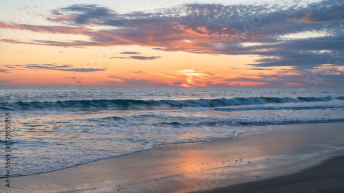 Fototapeta premium Coastal Sunset with Gentle Waves