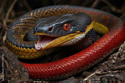 © wimudu, Obraz premium "Coastal Taipan Striking in Fiery Fury"