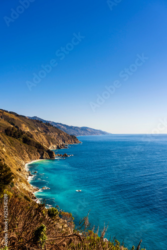 Obraz premium Coastline from Bluff, View, Rugged Mountains