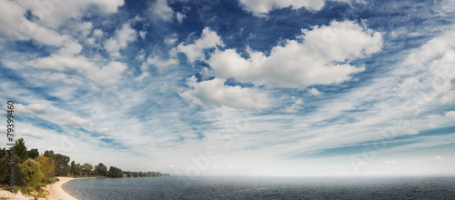 © savytska, Obraz premium Coastline of Kyiv Storage Pool