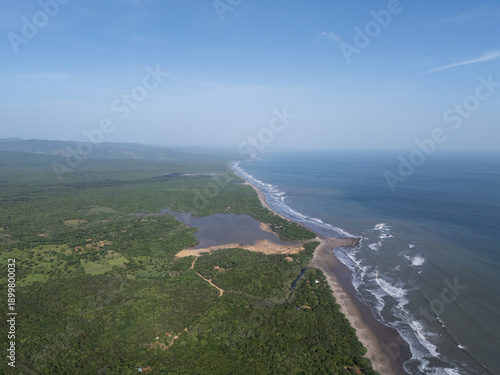 © PixieMe, Obraz premium Coastline of pacific ocean aerial drone view