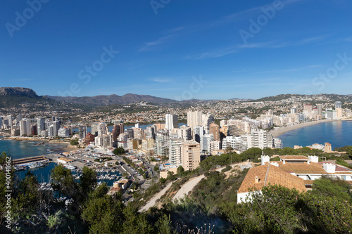 Fototapeta premium Coastline of the Mediterranean resort of Calpe, Spain with sea and yachts,...