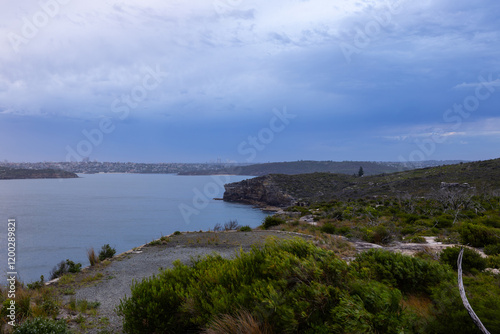 Fototapeta premium Coastline view around Sydney Harbour with cloudy sky.