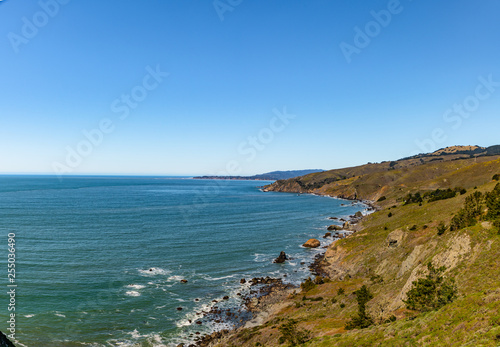 Fototapeta premium Coastline view seen from Stinson Beach overlook off highway 1 in California