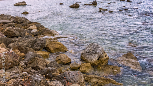 © bacsica, Fototapeta premium Coastline with waves hitting rocks