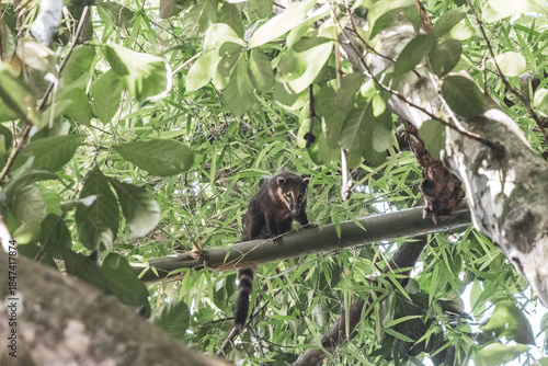 © Arkadi, Obraz premium Coati coatis climb trees and branches on Ilha Grande Brazil.