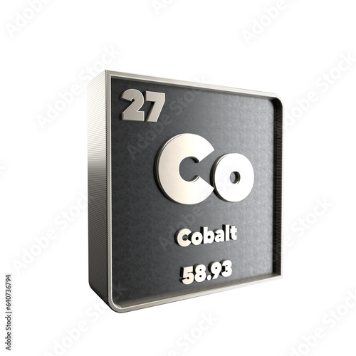 Obraz premium Cobalt chemical element black and metal icon with atomic mass and atomic number. 3d render illustration.