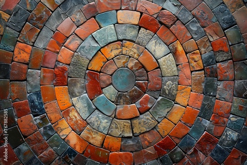 © hugo, Fototapeta premium Cobble circular pattern block pavement texture.