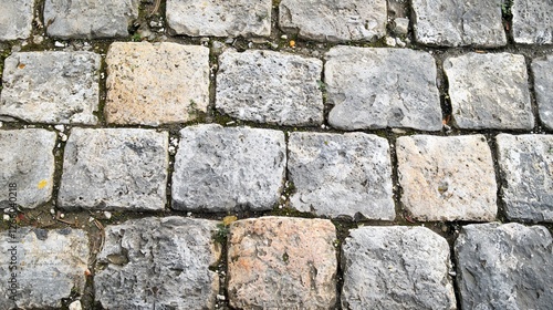© Husna, Obraz premium Cobblestone pavement texture, European city street background