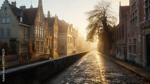 © Imsuniyah, Fototapeta premium Cobblestone Street in Bruges, Belgium