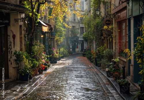 © yachyah, Fototapeta premium Cobblestone Street in Paris
