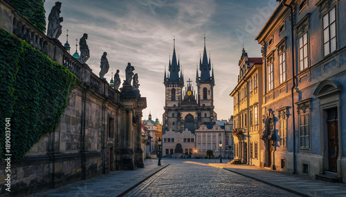 © SUMMIT, Fototapeta premium Cobblestone Street Leading to Gothic Cathedral in Old Town