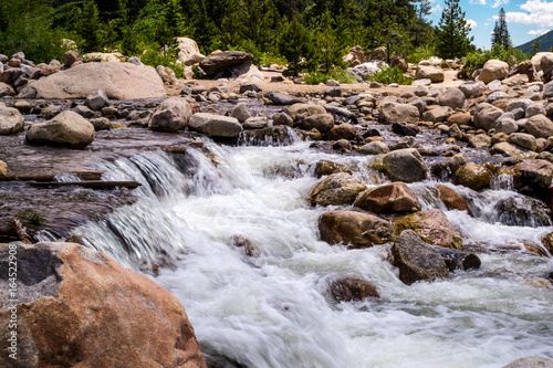 Fototapeta premium Cobblestones and mountain stream. Rapid water flow