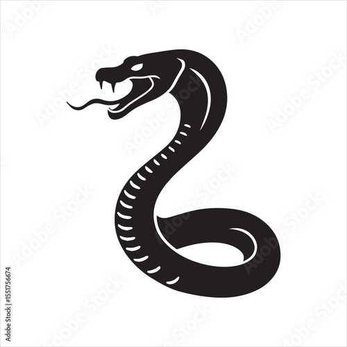 © MSTKHTEZA, Obraz premium Cobra Snake Silhouette Vector Design,Aggressive Snake Illustration in Black,Coiled Snake with Open Mouth Vector,Dangerous Cobra Snake Art for Tattoo,Wild Snake Logo Design in Flat Style