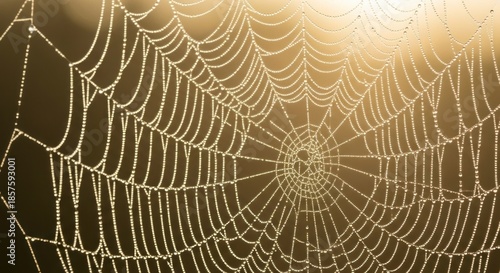 © Nb, Fototapeta premium Cobweb in morning sunlight closeup.