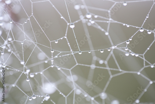 © Jenny Grewal, Fototapeta premium Cobweb with dew drops along the strands. Taken near Salisbury, England.