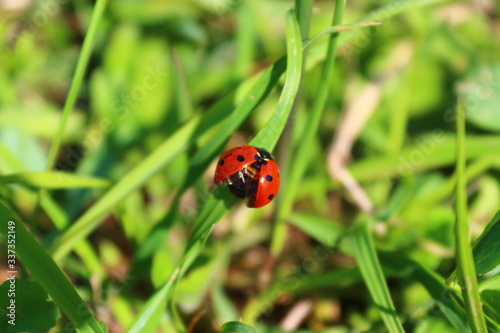 © DavideMzp, Fototapeta premium Coccinella preparandosi al volo