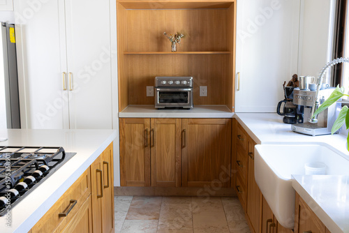 Fototapeta premium Cocina integral moderna estilo minimalista con toques rusticos de madera