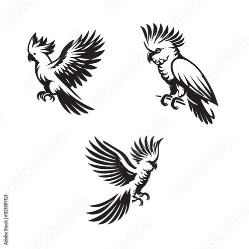 Fototapeta premium Cockatoo Silhouette Vector Set – Exotic Bird Illustrations for Creative Design