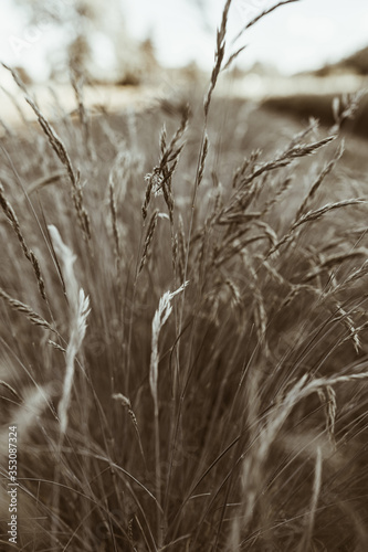 © Floral Deco, Fototapeta premium Cocksfoot bluegrass plant stalks field. Natural landscape