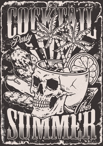 © DGIM studio, Naklejka premium Cocktail party posterer vintage monochrome