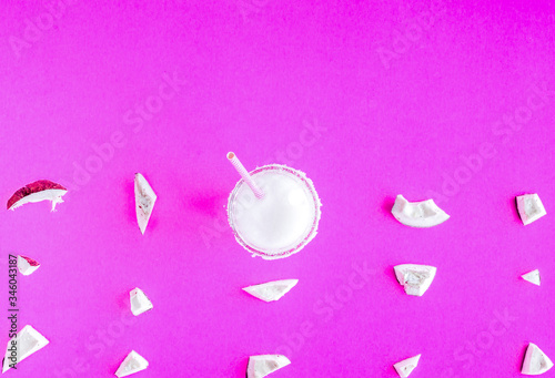 © 279photo, Fototapeta premium cocktail with coconut on purple background top view pattern