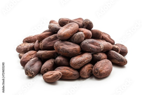 © LimeSky, Naklejka premium Cocoa beans on white surface Shallower focus