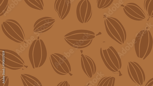 © Firman, Obraz premium Cocoa Pods Seamless Pattern, Chocolate Brown Botanical Background