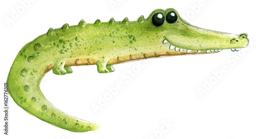 © childrendrawings, Naklejka premium cocodrilo en acuarela para niños