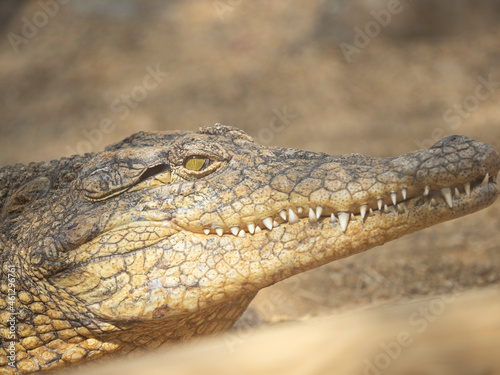 Obraz premium Cocodrilo obsevrvandonos mientras lo captamos con dientes afilados y sigiloso