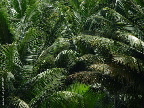 © srckomkrit, Fototapeta premium coconut leaf tree in garden