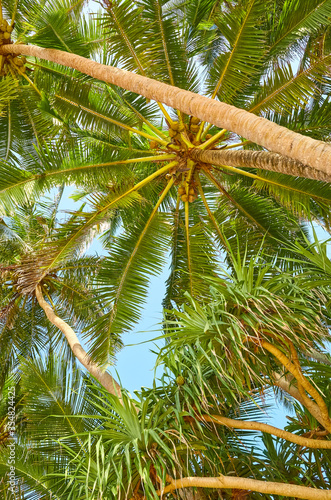 © MaciejBledowski, Fototapeta premium Coconut palm trees against the blue sky.