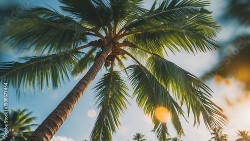 © Lasvu, Fototapeta premium Coconut Palm with Empty Copy Space for Text