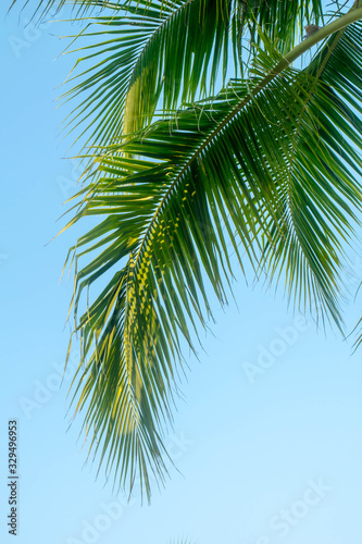 © KTI, Naklejka premium coconut plam leaf tree on blue sky