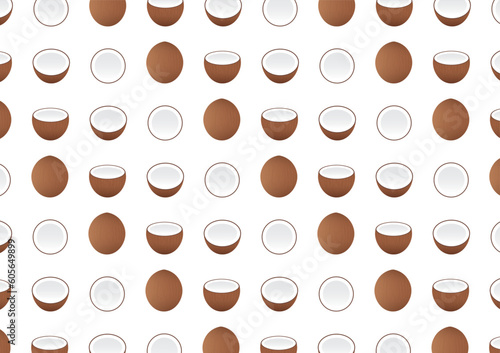 © BillionsPhoto, Obraz premium Coconut Seamless Pattern Background. Vector Illustration.