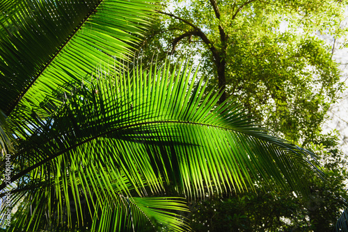 © o_lypa, Obraz premium Coconut tree palm with harvest down view