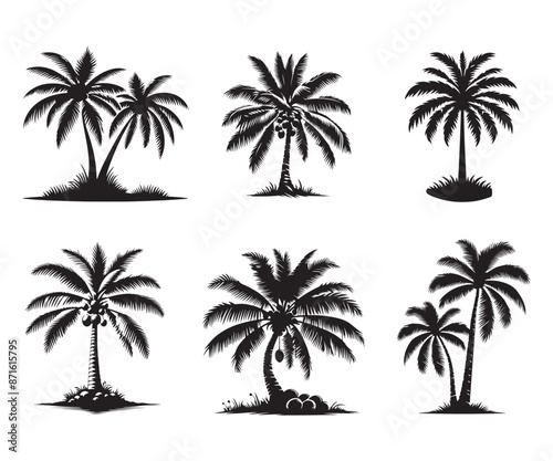 © Md Mithu Mia, Fototapeta premium Coconut Tree silhouette vector illustration style with white background