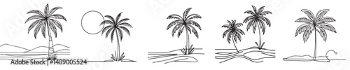 © Jefri Syahputra BKL, Obraz premium coconut tree vector continuous line style
