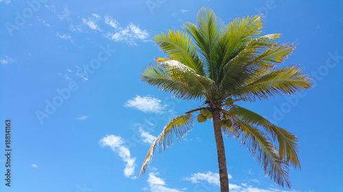 © Gustavo, Fototapeta premium Coconut tree with blue sky in background