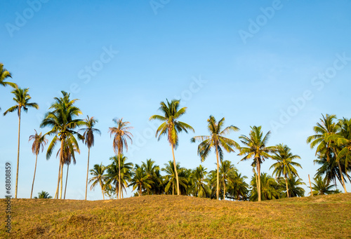 © Mohamad Zaki, Fototapeta premium Coconut trees against blue sky at village