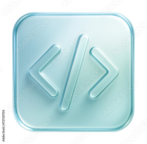 Obraz premium Code icon with glassmorphism effect for programming and web development.