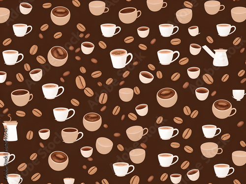 © Alexander, Obraz premium coffee and coffee beans patterns on a brown background