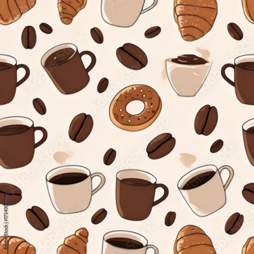 Obraz premium Coffee and Pastry Pattern
