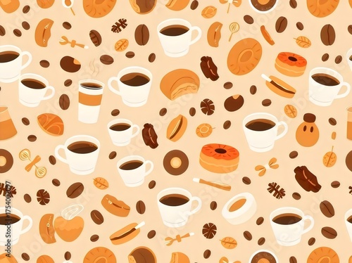 Obraz premium Coffee and Pastry Pattern