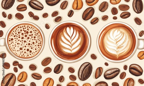 © Q STOCK, Obraz premium coffee art pattern for print, vector illustration style