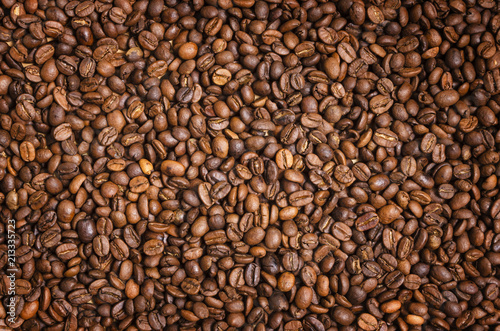 Fototapeta premium Coffee background. Brown roasted coffee beans.